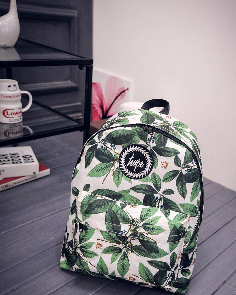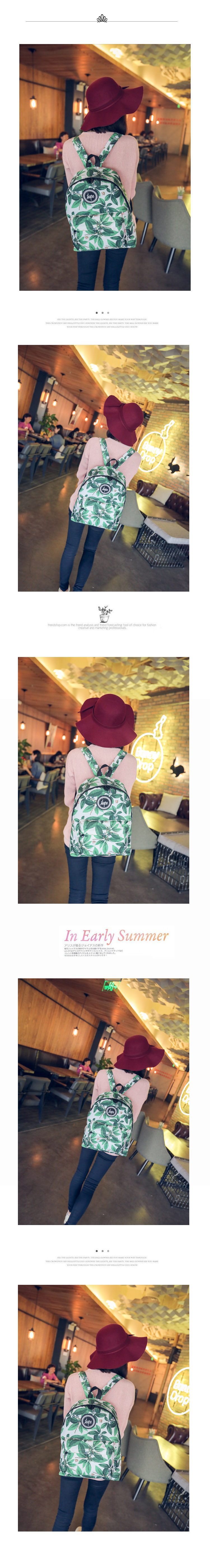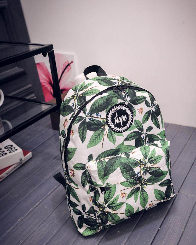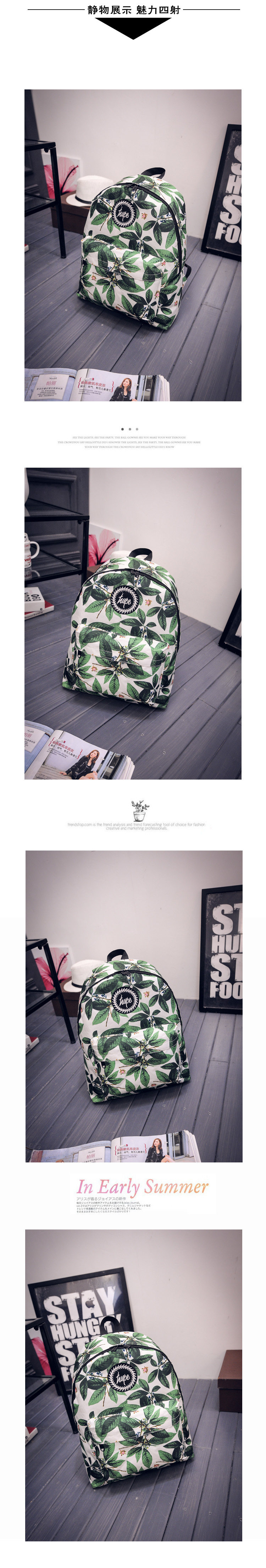 林小宅同款潮树叶印花双肩包女小清新中学生书包绿叶帆布电脑背包