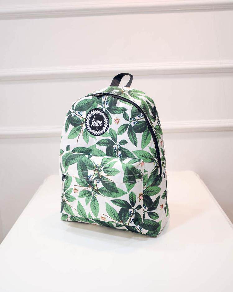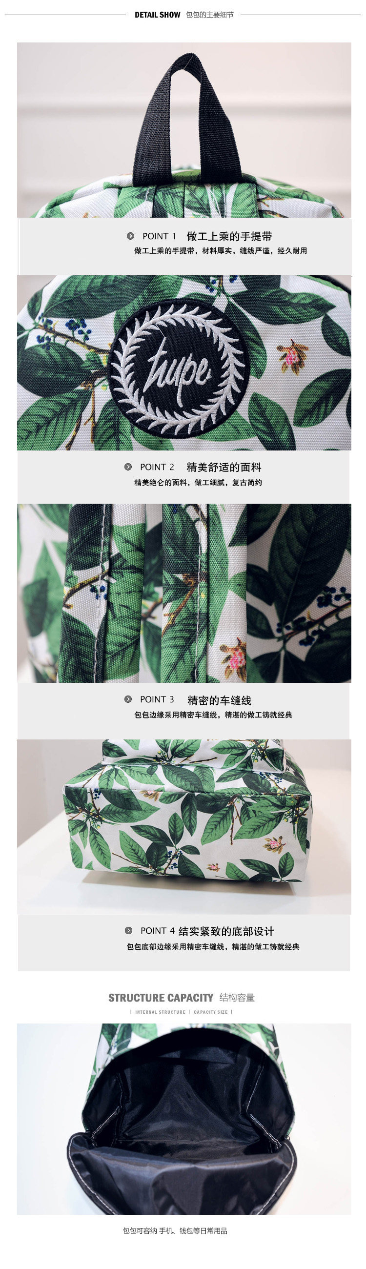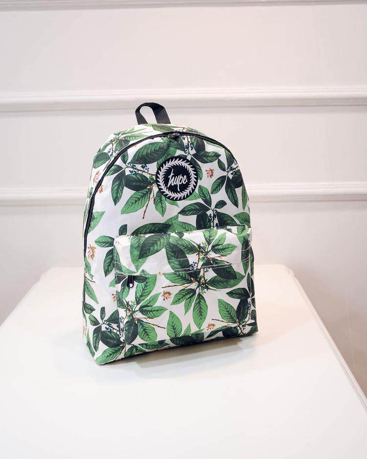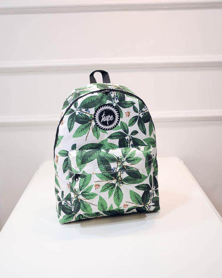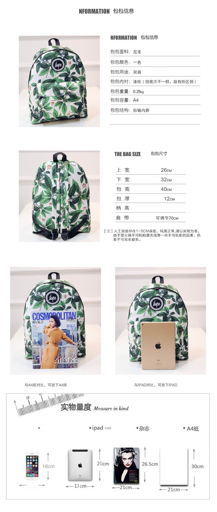 林小宅同款潮树叶印花双肩包女小清新中学生书包绿叶帆布电脑背包