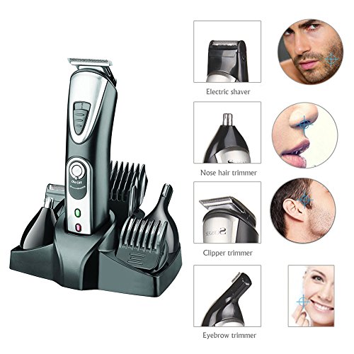 五合一セット:電動式バリカン、耳/鼻毛トリマ、髭トリマ、シェーバーアタッチメント、精密トリマーアタッチメント