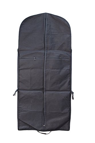 -. Feature : Full zipper closure protects your garments from the elements / Includes a carrying handle and fits most suit or jacket combinations / With portability in mind, the trifold design allows for a more compact garment bag / Made from nylon and non-woven materials / Two inside zipper pockets, deep enough to store a shirt, a pair of shoes, or accessories (ties, socks, belts)