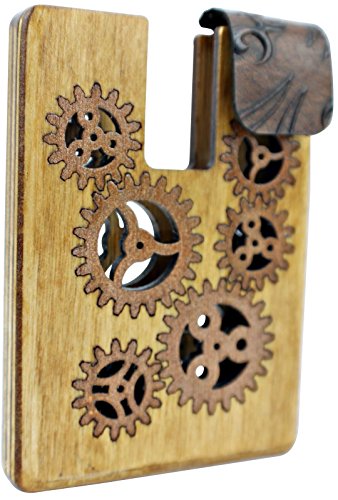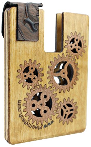 -. Binding : Apparel -. Brand : Steamy Tech -. Department : mens -. Feature : Made of wood with a slim profile and a decorated leather flap to hold cards in. / Holds up to 6 total credit cards, ID cards, or US business cards (Standard Size: 3.5" x 2") / Outside Dimensions: 3.75" tall, 2.75" wide, 0.5" thick. Inside has 1/4" of space. / Laser cut, Designed and Made in the USA. / Other Designs Available! -. PackageQuantity : 1 -. ProductGroup : Apparel -. ProductTypeName : ACCESSORY -. Size : One Size -. Title : Steamy Tech Wooden Mini Wallet - GEARS Design - Steampunk Inspired Wood Card Holder - Holds Credit, ID, or Business Cards