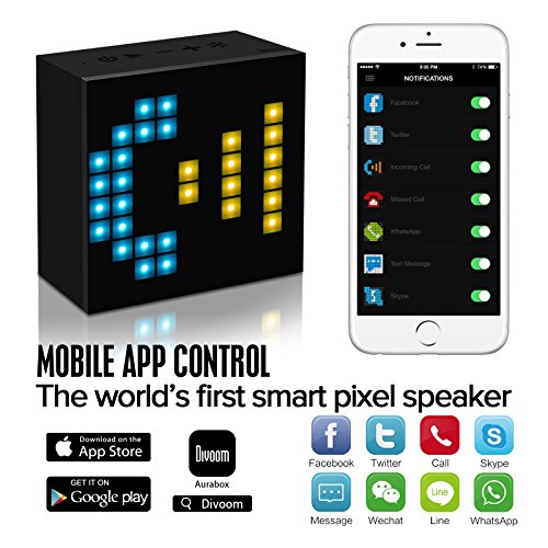 -. Title : Divoom® Aurabox Bluetooth 4.0 Smart LED Speaker with APP Control for Pixel Art Creation + Animation and Social Media Notification. Built-in Microphone for Handsfree Calling