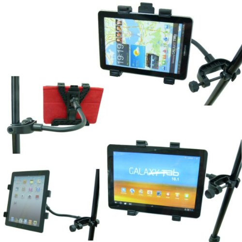 -. Binding : Personal Computers -. Brand : Buybits -. EAN : 5052010025325 -. Feature : Flexible fit Tablet PC holder complete with 18cm bendy goose-neck arm with universal G-Clamp mount fixture; universal tablet cradle fits 7" to 10" models & attaches to music /microphone stands in seconds. / Adjustable holder will accommodate a variety of cases & skins. Feet pull out to neatly fit around the tablet. Lipped design for added security. / Ratchet spine has a locking tab to hold all sizes securely. Cradle held on a ball joint for 360º tilt & swivel. / The universal G-clamp mount suitable for most music or microphone stands. / Fits round, square & oval bar, stems, poles & frames: Round - maximum diameter 35mm (1.38 inches); oval - maximum - 55mm (2.17 inches); square across flats - 25mm (1inch) - all measurements approx. -. Label : Buybits -. Manufacturer : Buybits -. Model : 15869 -. MPN : 15869 -. PartNumber : 15869 -. ProductGroup : PC Accessory -. ProductTypeName : COMPUTER -. Publisher : Buybits -. Studio : Buybits -. Title : Music Microphone Stand Tablet PC Mount (sku 15869)