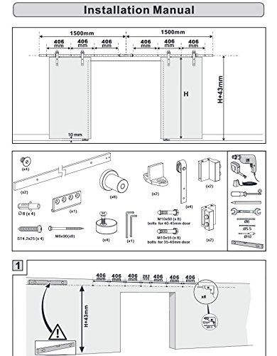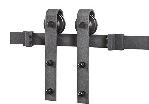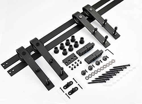 DIYHD 10ft Bent Straight Rustic Black Double Sliding Barn Door Hardware (10ft Track Kit)