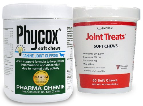 -. Feature : PhyCox-JS soft chews are a joint support formula to help reduce inflammation and discomfort due to normal daily activity. / PhyCox-JS Soft Chews contain Phycocyanin, a naturally derived Cox-2 inhibitor and antioxidant. / It is combined with glucosamine, MSN, minerals, essential fatty acids, amino acids and other antioxidants. / Free Joint Treats included with purchase