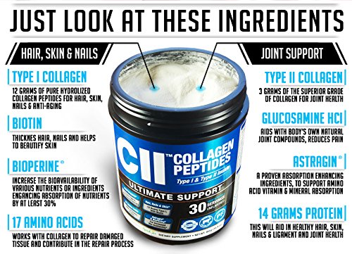 JOINT SUPPORT: 3 GRAMS of Type II Pure Hydrolyzed Chicken Collagen and Glucosamine HCI. Most others don't have Type II or Glucosamine HCI - it's expensive. CII has both - 3 Grams of Type II and Glucosamine HCI.