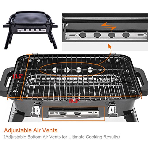 Pinty Portable Folding Charcoal Grill Carbon Steel Tabletop BBQ Grill for Outdoor Use, 250 Square Inch