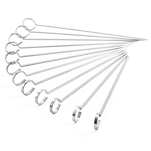 Perfect Grill BBQ Barbecue Skewers, Shish Kabob Sticks - 10-Inch, Stainless Steel Kebab - One Dozen (12-Pack)