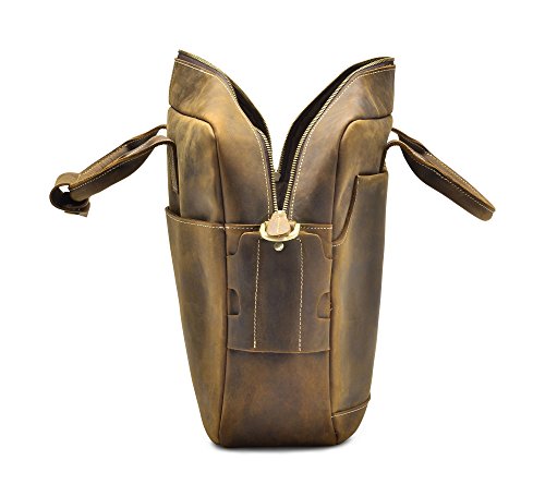 -. Feature : Genuine cow leather treated with Crazy-Horse technique / Solid brass hardware / Adjustable, padded and detachable leather shoulder strap / Electronic compartment for iPad or up to 16" laptop / 2 sleeve pockets , 2 Inside pockets, 2 pen holder, and a zipper pocket