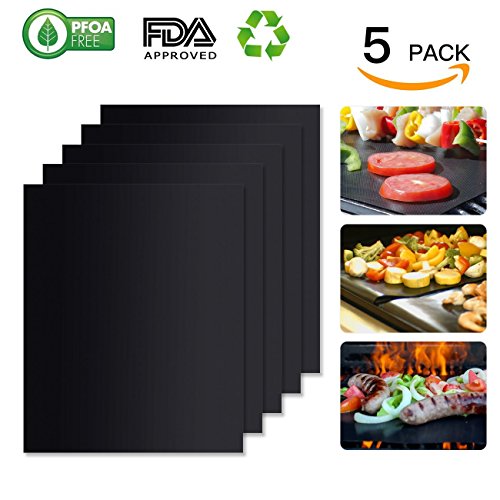 - # 100% Non-Stick --- DOLDOA BBQ grilling mats are made of a BPA-free and PFOA non-stick PTFE material,which is very smooth,safe and not sticky to food,can resist heat up to 500 DEGREE Peak Temperature.DOLDOA grill mats are very easy to clean,ordinary household cleaners can be slightly soaked to clean,perfect for grilling vegetables,steaks,shrimps,burgers,brats,and seafood.A box contains 3/5 pieces to enrich your kitchen.