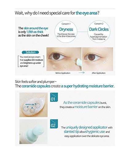 Details : Whitening / Anti-Wrinkle / Tested for skin irritation / Improves dark circles / Moisturize and brighten up the delicate skin around the eyes / Mistletoe and Ceramides Complex creates a protective moisture barrier / Ceramide capsules soothe sensitive eye area and create a moisture barrier / Country of Origin : South Korea