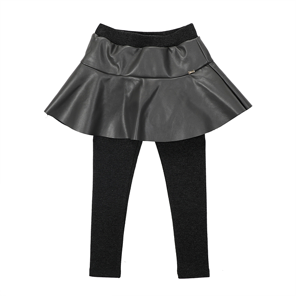 상세설명-고급스러운 다크그레이컬러에 가죽느낌의 스커트가 배색이 되어 세련된 느낌을 강조한 상품입니다.