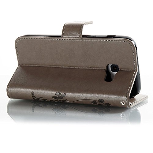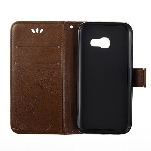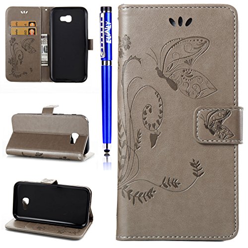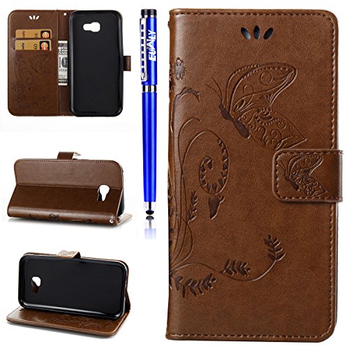 EUWLY Lederhulle fur [Samsung Galaxy A5 2017], Schmetterling Blumen Hulle Luxus Leder Tasche Brieftasche Ledertasche fur Samsung Galaxy A5 2017, Retro Pragung Malerei Butterfly Flo