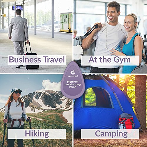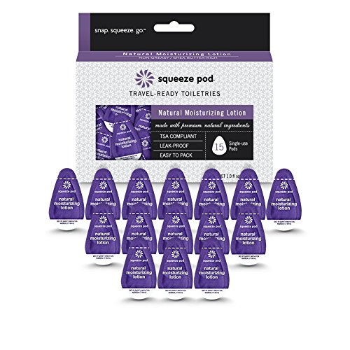 Squeeze Pod is a travel-ready line of travel size personal care products conveniently packaged in patented, single-use "pods" for pampering and problem-solving on the go. All Squeeze Pod products are manufactured in the USA using premium natural ingredients. Perfect for travelers and active people who squeeze the most out of life, Squeeze Pods are TSA-approved and easy to pack or tuck in a pocket, purse, carry-on or gym bag. We're proud our products are vegan and certified cruelty-free by PETA. Squeeze Pod Travel Size Natural Moisturizing Lotion is made with a quartet of natural moisturizers-shea butter, aloe vera, algae extract and jojoba extract-and infused with essential oils of grapefruit and bergamot for a citrus scent that soothes the senses. This hardworking multi-tasker is the perfect travel companion: Use it to protect hands, hydrate post-shower, soothe after a shave, remove makeup and keep skin feeling supple and looking youthful. Our super-convenient lotion pods will never leak in your bag or on your clothes. Take Squeeze Pod Travel Size Natural Moisturizing Lotion on the go for pure, non-greasy, non-comedegenic dry skin relief.Feature