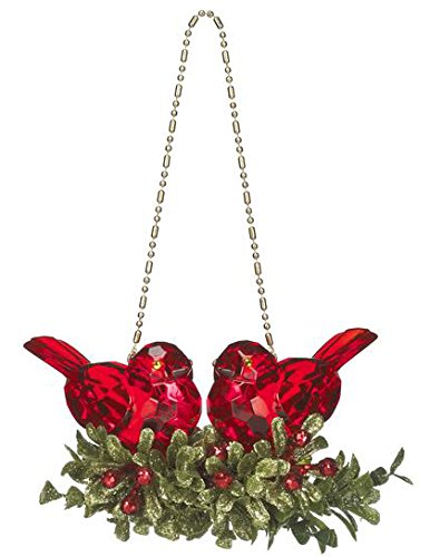 Ganz 5" Kissing Kyrstal Ball Ornament, Double Cardinal Bird Mistletoe, Red - Wedding Acrylic