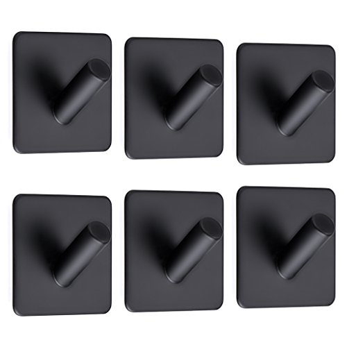 Sumnacon Stainless Steel Coat Towel Hooks, 3M Self Adhesive Closets Clothes Key Rack, 6 Pack Heavy Duty Contemporary Utility Hook for Bathroom Kitchen Bedroom Office, Matte Black Finish