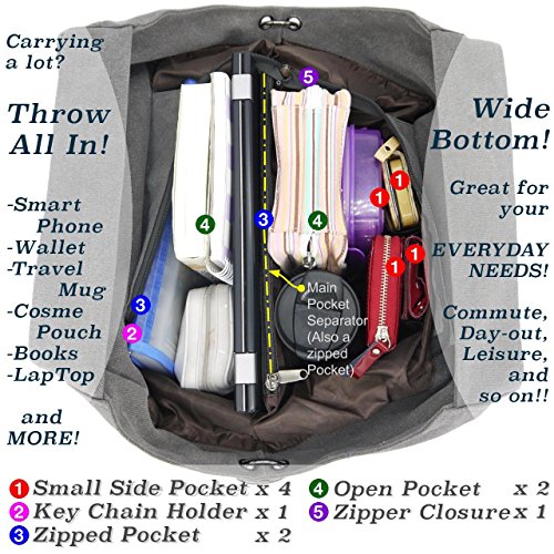 Women Hobo Chic Canvas Shoulder Bag, Simple Casual Large Capacity (KIREI obsession) 5 COLORS