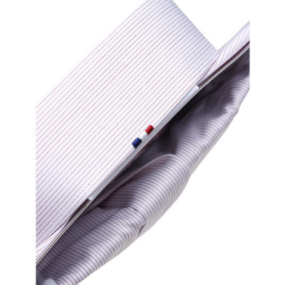 클래식한 핀스트라이프 원단의 카라뒷고대 삼색자수가 포인트인 비지니스 제품입니다.