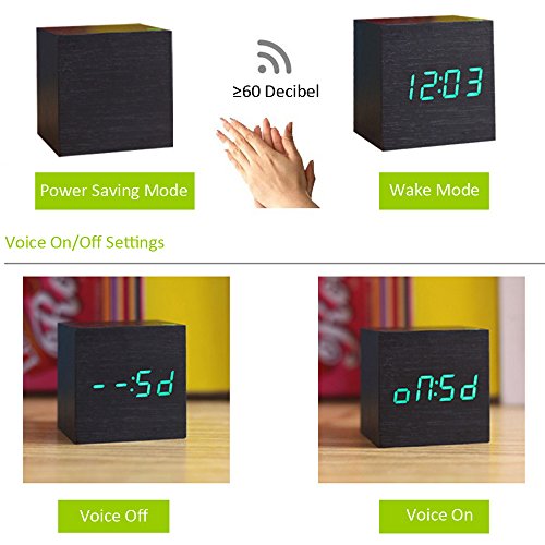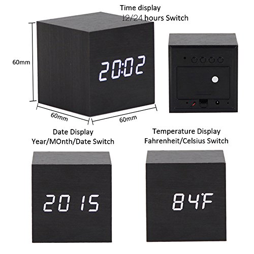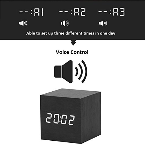-. Title : Arswin LED Wooden Alarm Clock, Digital Voice Control Clock, Time/Date/Temperature Display, 3xAAA Batteries/USB Charge, Cube Wood-shaped Desk Alarm Clock for Kids&Adults, Home&Office&Living Room