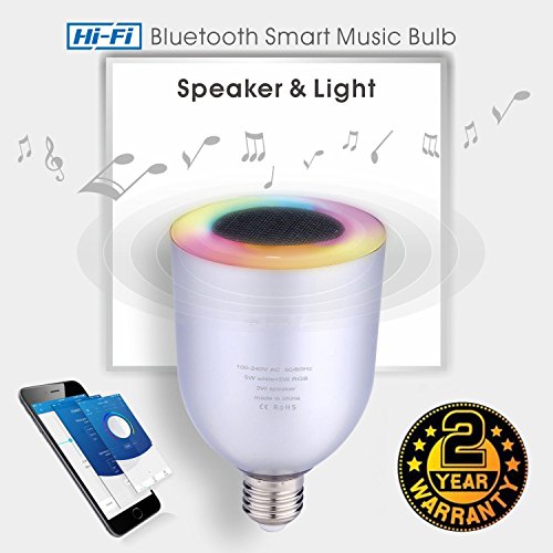? Smart and Modern Design:This bluetooth music light bulb looks very elegant.360 all-round adjust all different colors,dim the color,adjust the brightness,power on/off wirelessly via smartphone or tablet APP,and make the light interact with the music.