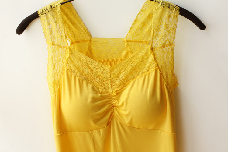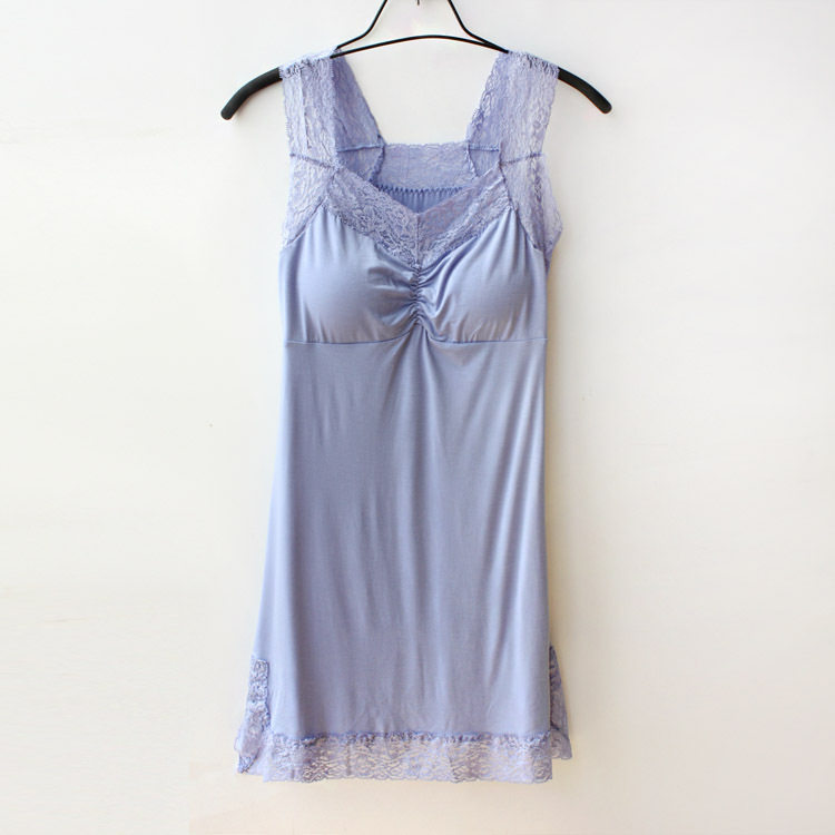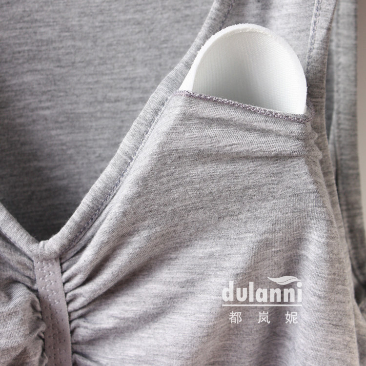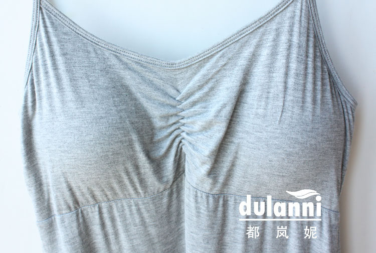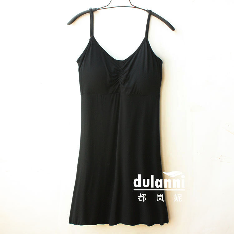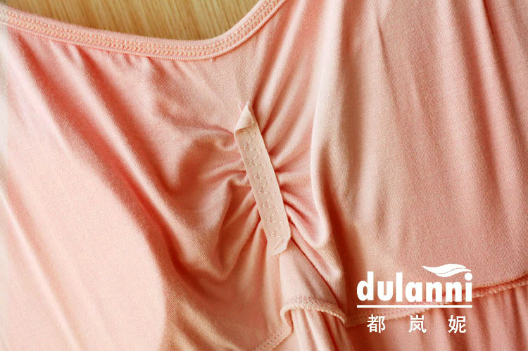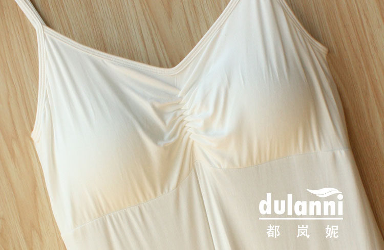 带胸垫,胸垫可以取出来,居家穿很实用,家里有其他的长辈或者晚辈,穿上这样的睡裙,不露点,很舒服!