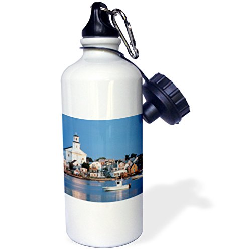 3dRose wb_192153_1 "USA, Cape Cod, Massachusetts, Provincetown Harbor and town." Sports Water Bottle, 21 oz, White