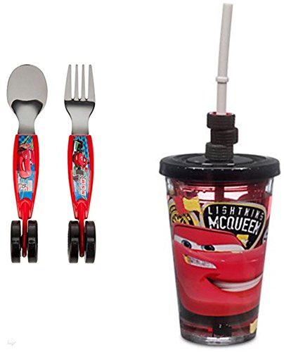 Bundle includes Disney Store Cars Tumbler with Straw and Flatwear Set