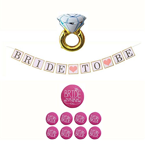 -. Feature : PACKAGE INCLUDES: 1 Ring Balloon, 1 Bride To Be Banner, 9pc Button set / 1 Ring Balloon: 28" ideal for those who use with air or helium, also an exceptional choice for anyone with allergic reactions to latex. Balloon can not be inflated by mouth / 1 Bride To Be Banner: Cards along with ribbons are provided individually, you will have to string them with ribbon ,which is fairly simple to achieve. Most suitable for bachelorette party decorations, photo props, bridal shower decor. / 9pc Bachelorette Party Button Set: 1 button for the bride, 8 buttons for the team, easy to attach pin badges. / Our items include a 100% Satisfaction Guarantee. Get your money back if you are not pleased with your investment.