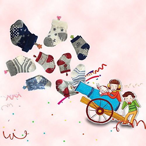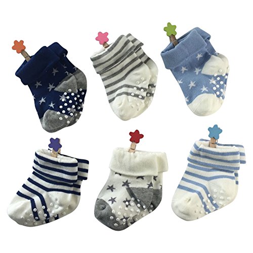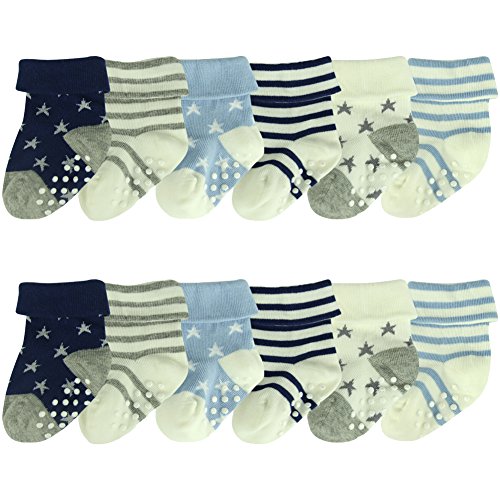 ComiFun Baby Boy Girl Non Slip Cotton Infant Todder Ankle Socks with Grip 3-24 Months,6/12 Pairs