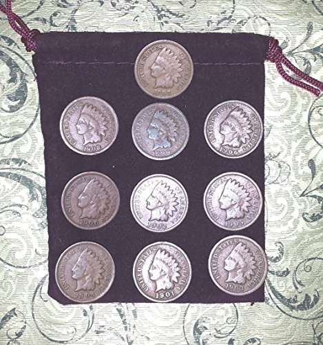 10 different Indian Head Cents Pennies in Gift Bag - 10 Little Indians