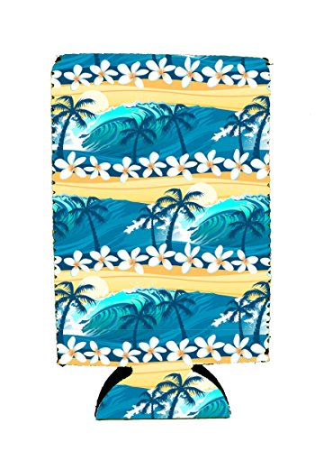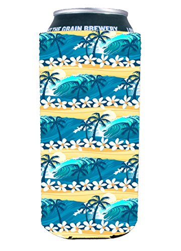 Coolie Junction Waves Tropical Beach Pattern 16 oz. (Pint) Can Coolie