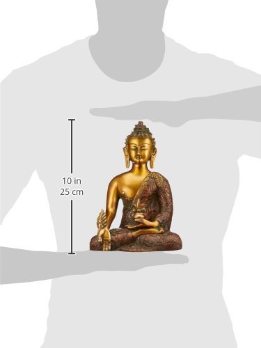 The Medicine Buddha (Robes Decorated with Auspicious Symbols and Dragon Figures) - Brass Statue