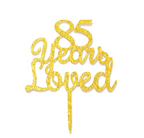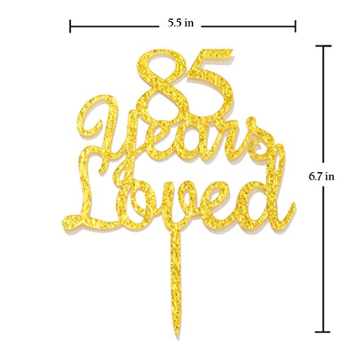 Qttier 85 Years Loved Cake Topper Happy 85th Birthday Anniversary Party Decoration Premium Quality Acrylic Gold