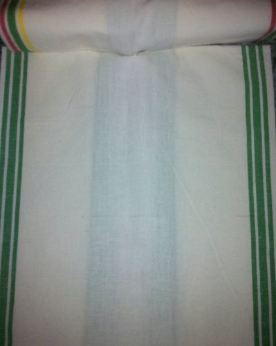 - Each has the Logo on 1 end, only difference in the towels is that one has green stripes and one has green,yellow and red stripes.