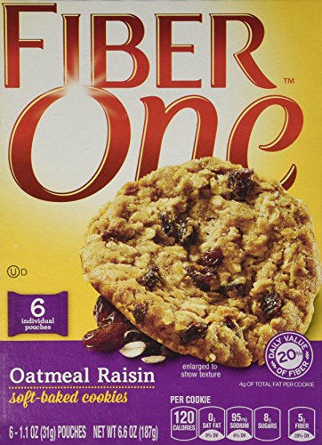 General Mills, Fiber One, Soft Baked Cookies, Oatmeal Raisin, 6.6oz Box (Pack of 4)
