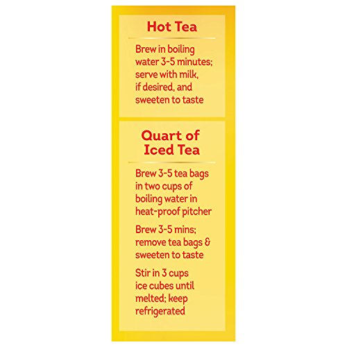 -. Feature : Lipton Black Tea Bags have a rich taste, intense color and invigorating aroma / Carefully selected and fresh-pressed tea leaves, capture as much natural tea taste as possible / Sturdy, secure lock-box for easy storage, and wrapped Stay Fresh tea trays to help preserve great tea taste and aroma / Enjoy Lipton Tea either hot or iced / Lipton Black Tea is made with only 100% Rainforest Alliance certified tea bags