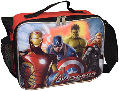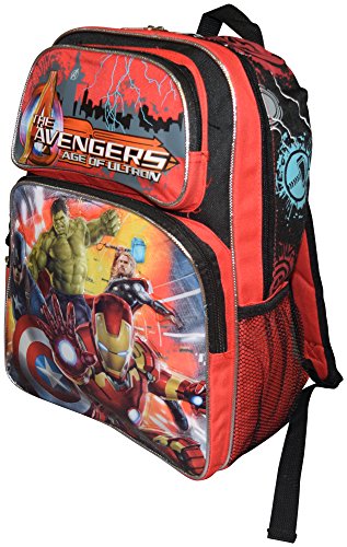 -. Brand : Avengers -. Color : Black-Red -. Department : boys -. EAN : 0656727649017 -. Feature : Made of an easy to clean and very durable polyester cordura fabric with stunning embossed 3D logos / This set of two includes one backpack and one insulated lunch box completely separated for easy handling / Backpack features one large zippered compartment for binder, books and folders, beautiful side pockets and two front cargo zippered pockets. / Backpack with special padded adjustable shoulder straps for additional comfort / Backpack dimensions: 16"H x 12"W x 5"D. Lunch Box is 7.5"H x 9.5"W x 3.5"D -. PackageQuantity : 2 -. ProductGroup : Apparel -. ProductTypeName : LAGE -. Size : Medium -. Title : Marvel Avengers Deluxe 3D Embossed Set Of Two 16" School Backpack And Matching Insulated Lunch Box -. UPC : 656727649017