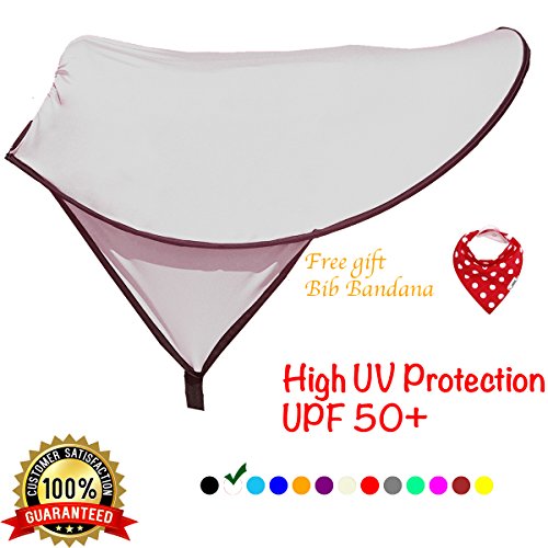 Sun Shade for Baby Strollers and Car Seats Canopy | Full UV Protection UPF 50+ | Adjustable and Easy To Install | Compatible on Both Strollers and Car Seats | FREE BONUS - Bib Bandana (White)