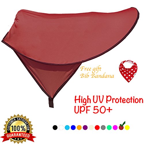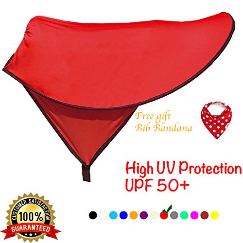 Sun Shade for Baby Strollers and Car Seats Canopy | Full UV Protection UPF 50+ | Adjustable and Easy To Install | Compatible on Both Strollers and Car Seats | FREE BONUS - Bib Bandana (Red)