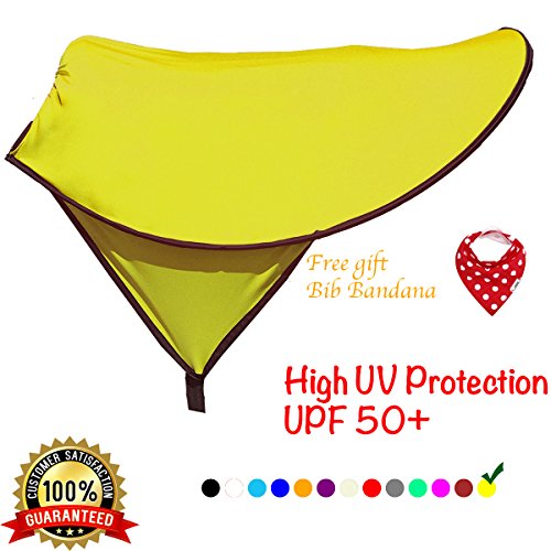 Sun Shade for Baby Strollers and Car Seats Canopy | Full UV Protection UPF 50+ | Adjustable and Easy To Install | Compatible on Both Strollers and Car Seats | FREE BONUS - Bib Bandana (Yellow)