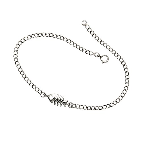 -. Title : Sterling Silver Modern Fish Skeleton Anklet, 9.5"