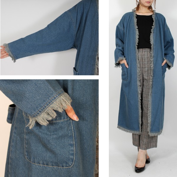 | 実寸 | 着丈:110cm、肩幅:60cm、バスト:120.5cm、袖丈:45cm、袖口:28cm、裾周り:140cm |