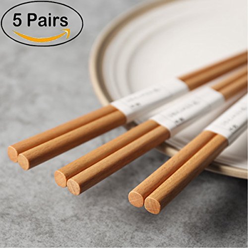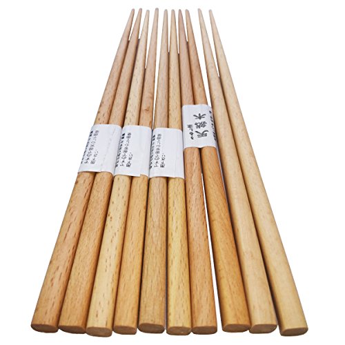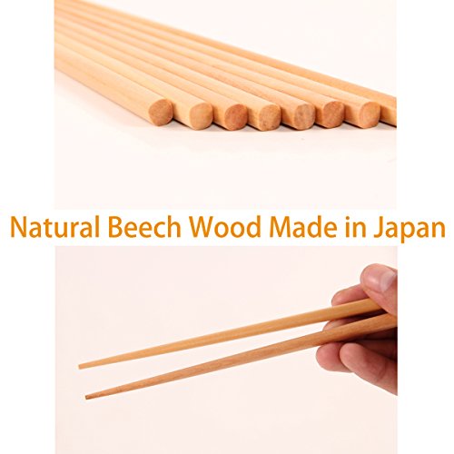 5 Pairs Natural Beech Wood Chopsticks, 8.9inch 22.5cm Smooth Surface Premium Quality