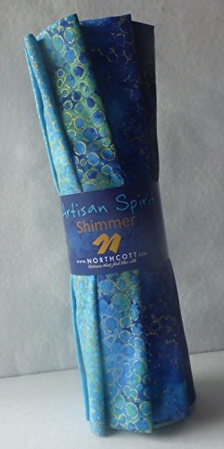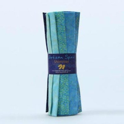Artisan Spirit Shimmer Collection by Deborah Edwards for Northcott Fat Quarter Rolls bundle; 100% cotton premium quilt shop quality fabric Bundle includes 9 18-inch by 22-inch fat quarters Precut, folded and rolled by the manufacturer Includes variety of blue-hued fat quarters from the Shimmer Collection