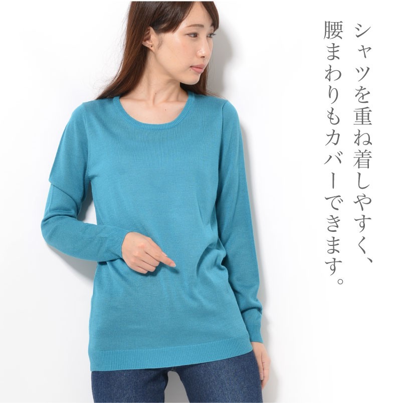 シャツを重ね着しやすく、腰まわりもカバーできます。