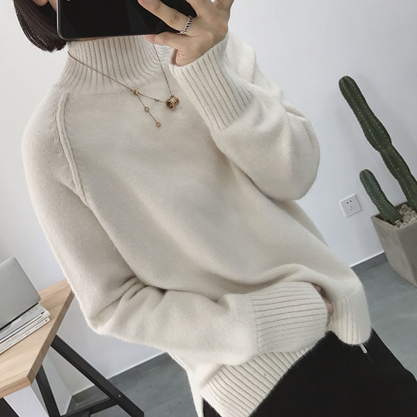 坑条半高领的设计 炒鸡洋气 舒适感也很强 一点也不勒人
