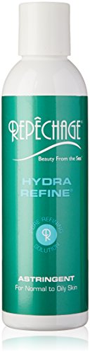 Repechage hydra refine astringent (normal/oily skin types) helps control oil, minimizes pore size and purifies the skin. Based on oil controlling marine seaweed, astringent lemongrass, fresh cucumber, and farnesol, a blemish fighting active ingredient from lily of the valley. Also contains a blend of mulberry and licorice extracts to help brighten the skin. Allantoin aloe vera soothe and calm. Directions: after cleansing apply astringent to cotton dampened with warm water. Sweep over face and neck in upward and outward strokes avoiding eye area. Repechage hydra refine astringent ingredients: water, aloe barbadensis leaf juice, sd alcohol 40b, butylene glycol, hexylene glycol, polysorbate 20, laminaria saccharina, cymbopoga schoemanthus (lemongrass) extract, cymbopoga schoemanthus (lemongrass) oil, cucumis sativus (cucumber) fruit extract, farnesol, morus bombycis root extract, glycyrrhiza glabra (licorice) extract, allantois, phenoxyethanol, sorbic acid.Feature