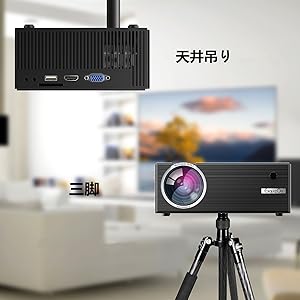 画像を360°反転する機能が付いておりますので、正面、背面と天吊り三つの投写方法により、卓上または天井からの吊り下げ設置が可能です。ビジネスユースや家庭用や育児用など、さまざまな場所に対応できます!天井に吊り下げ設置できます。