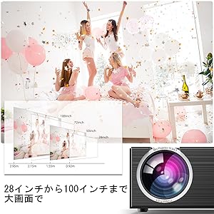 投射距離(約1m〜3m)によって28-100インチの迫力大画面でお気に入りの映画、テレビドラマ、アニメを鑑賞することができます。懇親会、イベント、勉強会、セミナー、パーティー、ゲームなど様々な用途に合わせ、御使用頂けます。