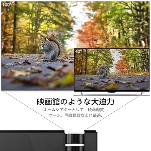 2Wのスピーカーが内蔵してあるので、効果音がより良い、最大21畳ぐらいサイズの部屋にオート再生ストレスなく、家で映画館の雰囲気を作ります!(音質にこだわる方に対して、プロジェクターと外部スピーカーを組み合わせて音を綺麗に大きく出力することもできます。)